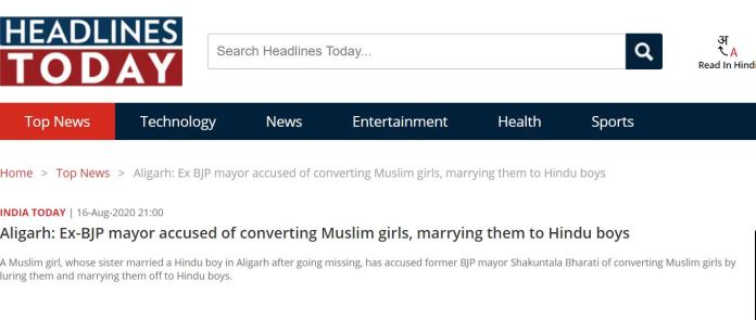 A Muslim girl, Nazia Saifi alias Asiya, whose sister married a Hindu boy in Aligarh after going missing, has levelled serious allegations against former BJP mayor Shakuntala Bharti. Asiya held a press conference on Sunday, with the help of two local journalists and a local AIMIM leader, in which she accused Shakuntala Bharti of converting Muslim girls by luring them and marrying them off to Hindu boys. She accused the former BJP mayor of doing the same with her sister.