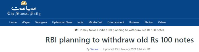 Media houses spread fake news saying RBI is discontinuing old series of Rs.100, Rs.10 and Rs.5 notes from circulation